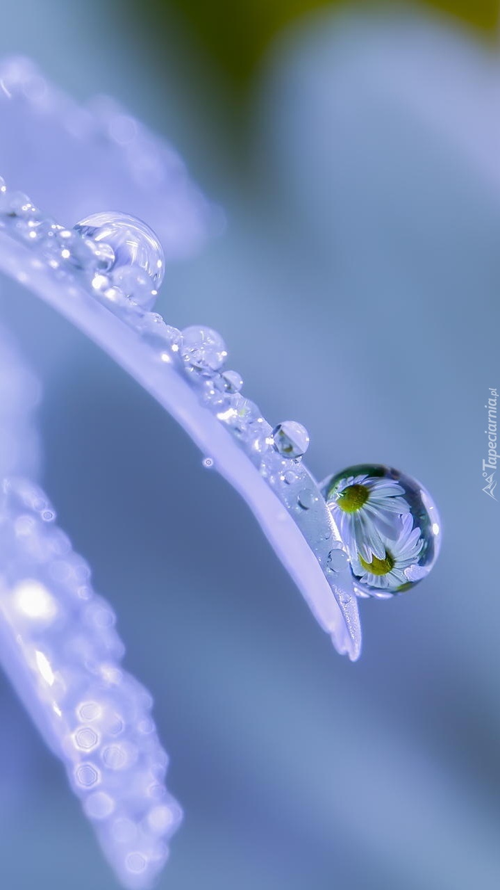 Edytor tapety: Płatki kwiatów w kroplach w makro