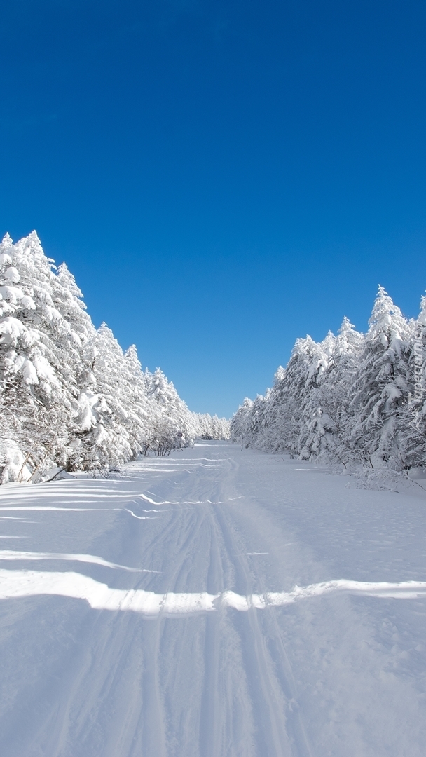 Edytor tapety: Ośnieżona droga przez przełęcz w Japonii