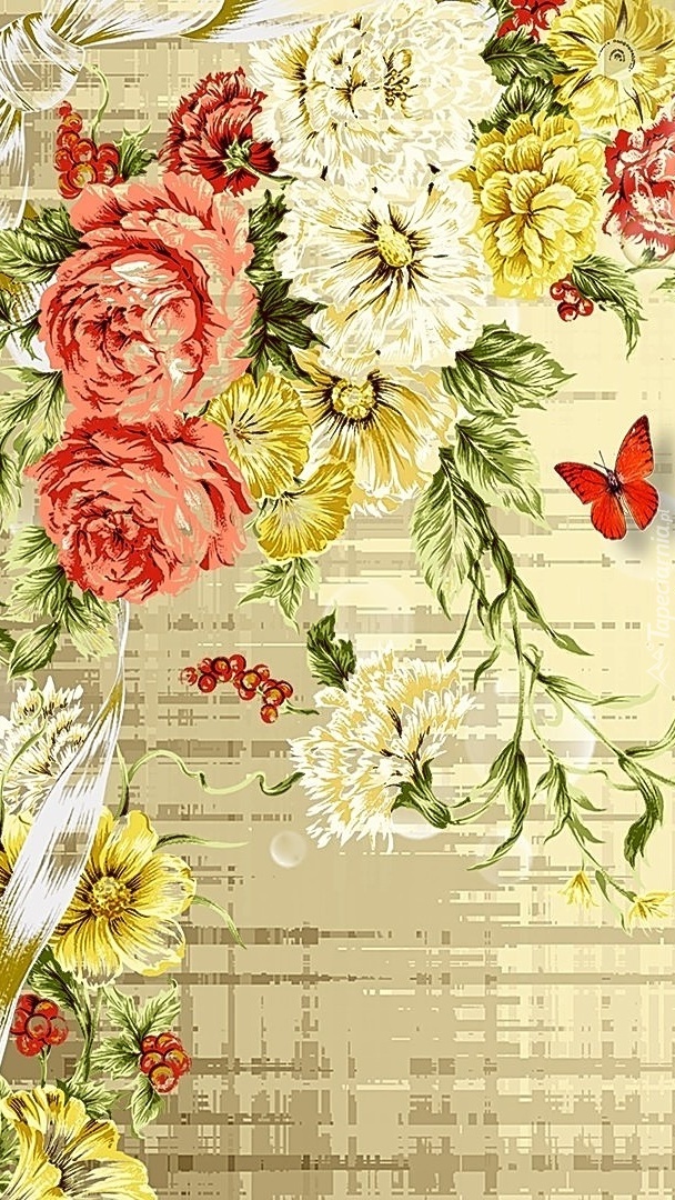 Edytor tapety: Graficzne kwiaty i motyl