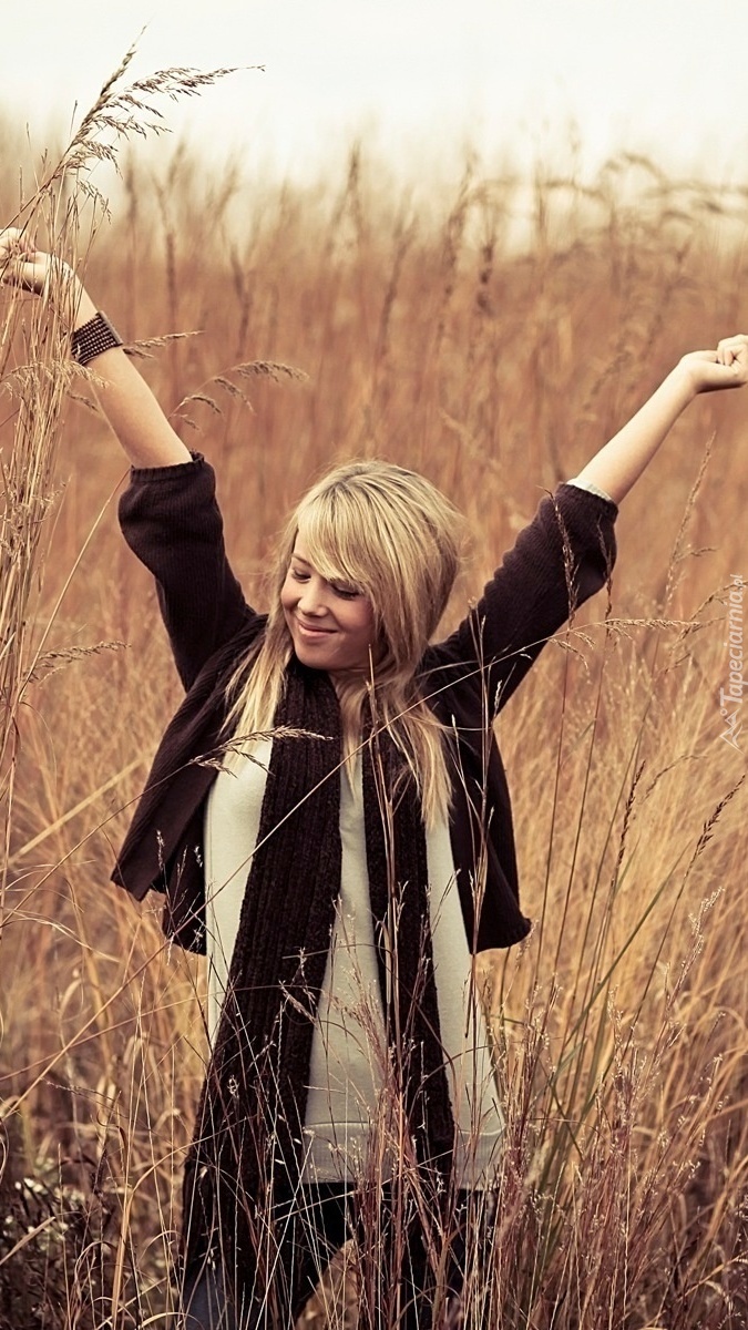 Edytor tapety: Radosna kobieta w trawie