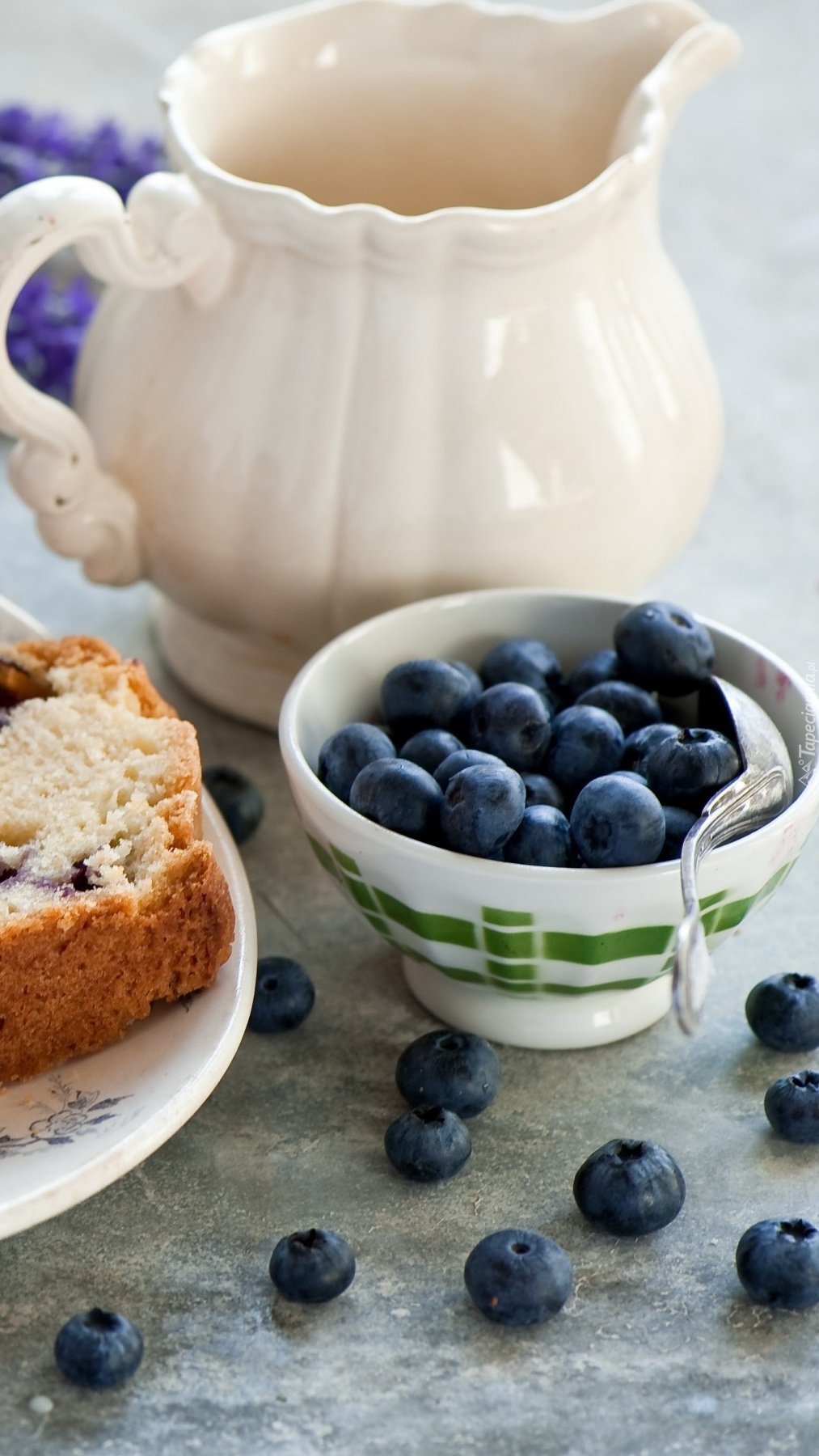 Edytor tapety: Miseczka jagód i dzbanuszek