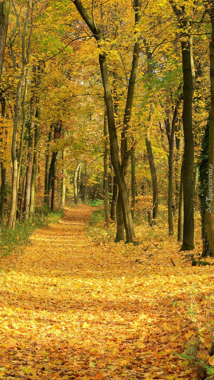 Edytor tapety: Leśna droga usłana liśćmi