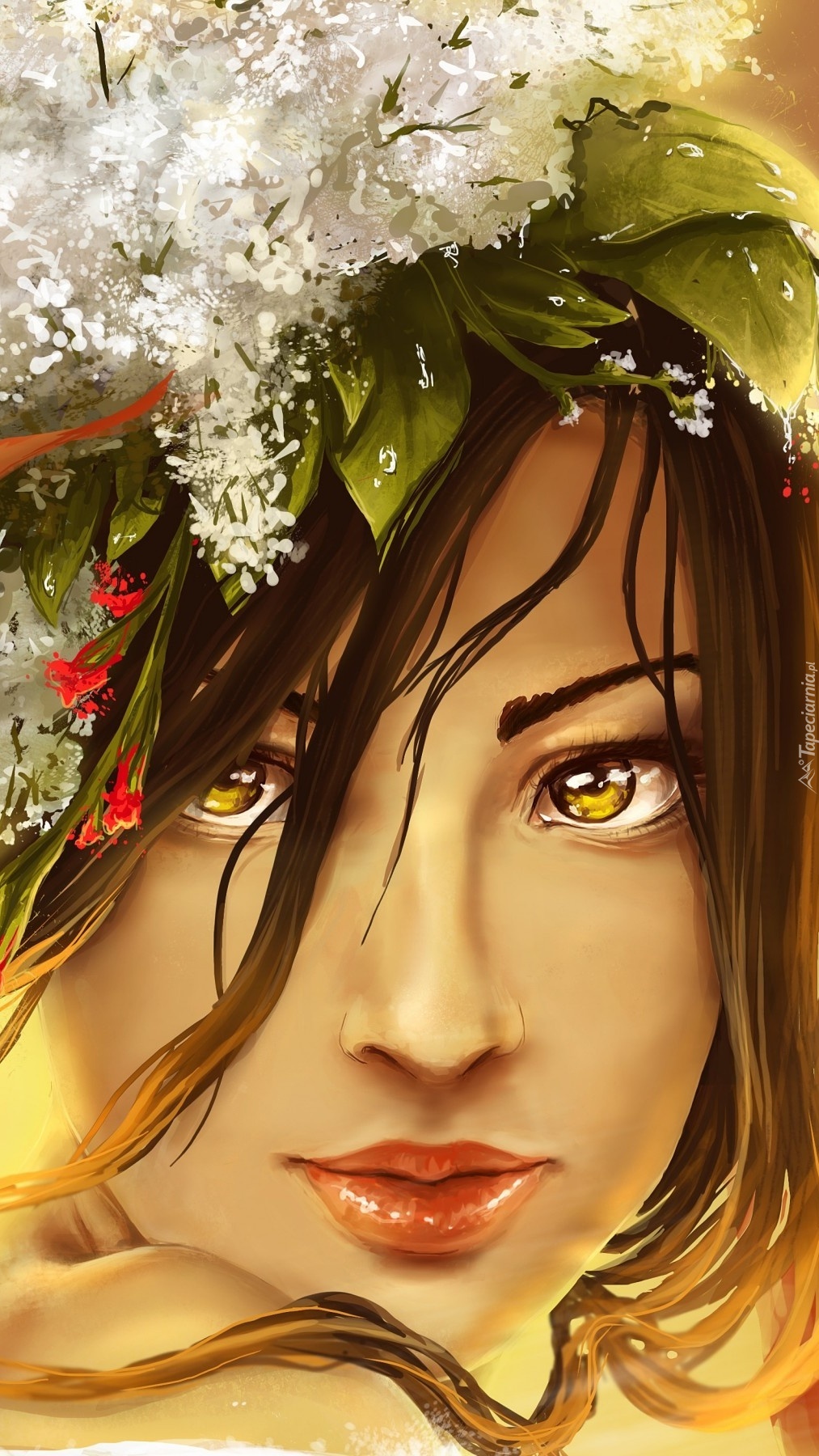 Edytor tapety: Kwiaty na głowie dziewczyny