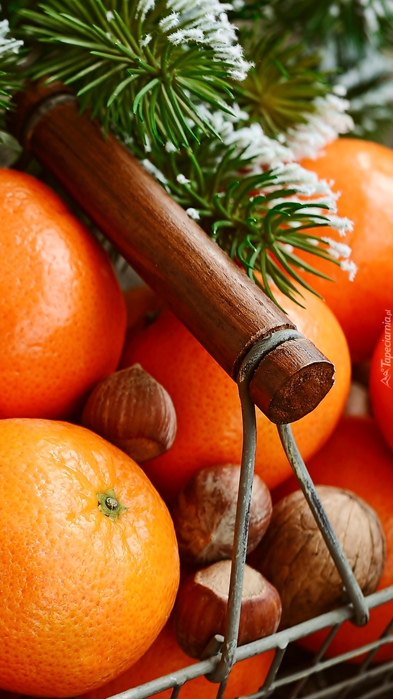 Edytor tapety: Pomarańcze i orzechy w koszyku