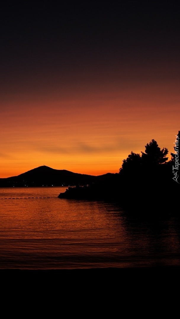 Edytor tapety: Jezioro w zachodzącym słońcu