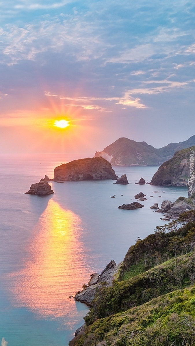 Edytor tapety: Morskie skały w promieniach słońca