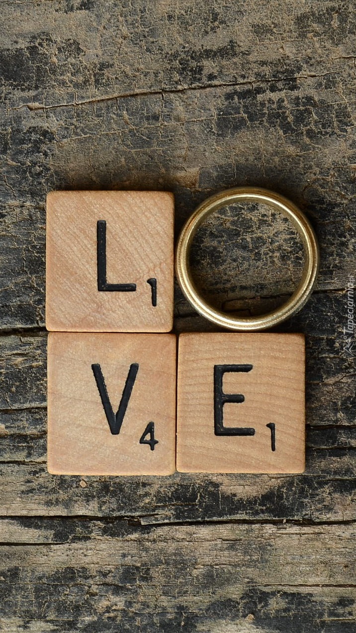 Edytor tapety: Klocki i obrączka tworzą napis love