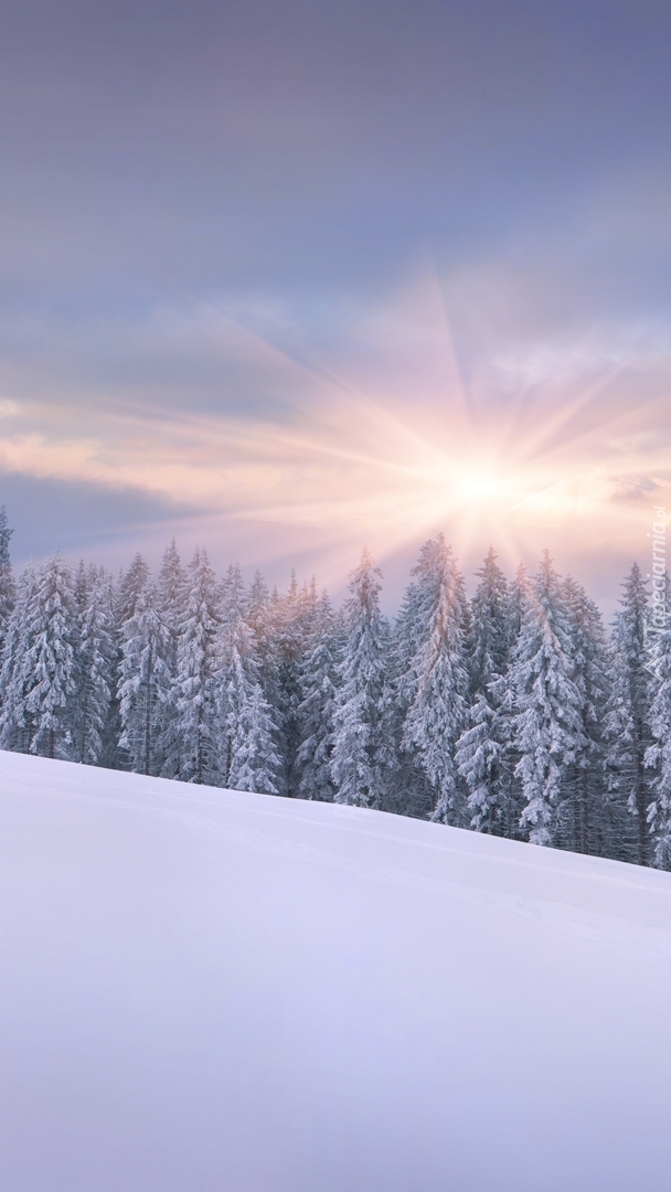 Edytor tapety: Zimowy las o wschodzie słońca