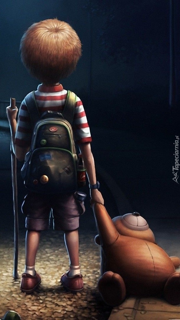 Edytor tapety: Mały wędrowiec z misiem