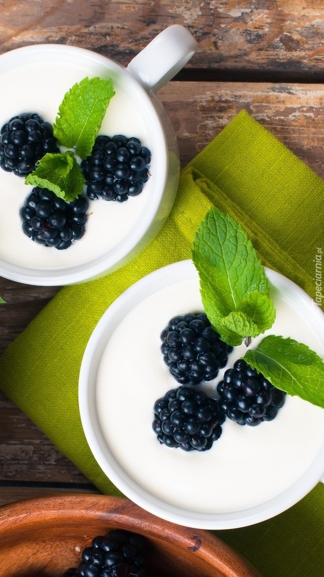 Edytor tapety: Jogurt z jeżynami w kubkach