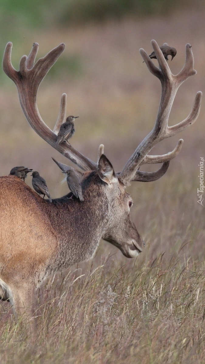 Edytor tapety: Ptaszki siedzą na jeleniu
