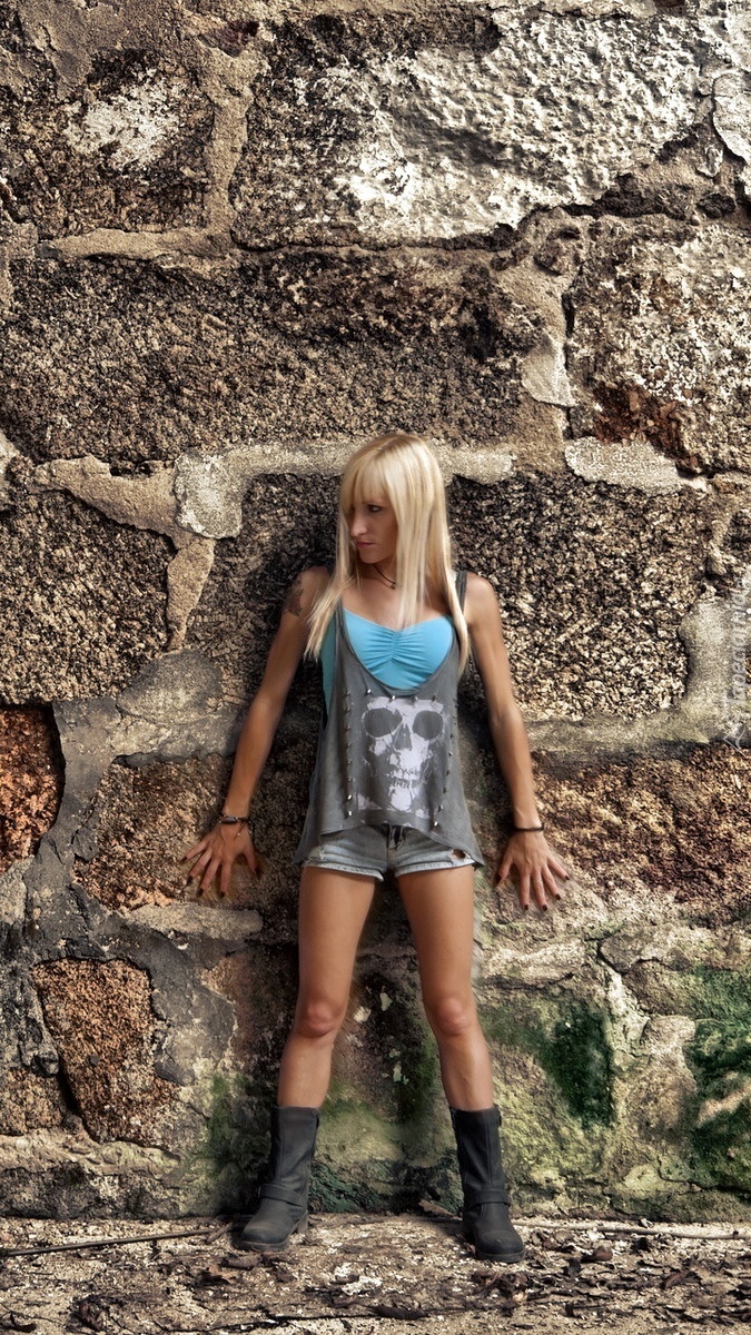 Edytor tapety: Kobieta oparta o mur