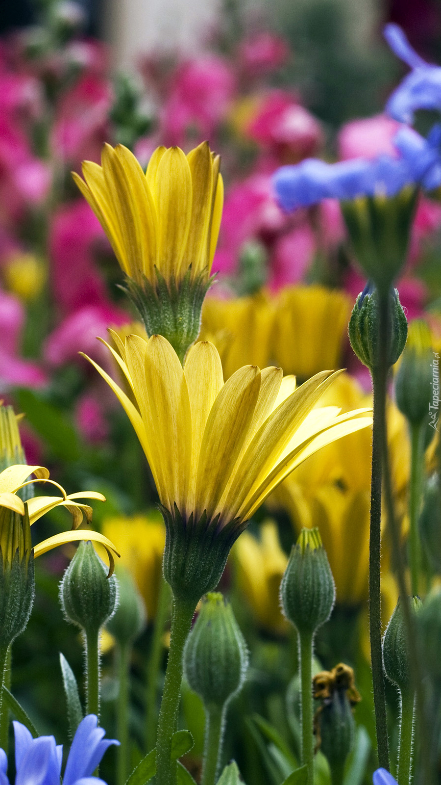 Edytor tapety: Kolorowe kwiaty w ogrodzie