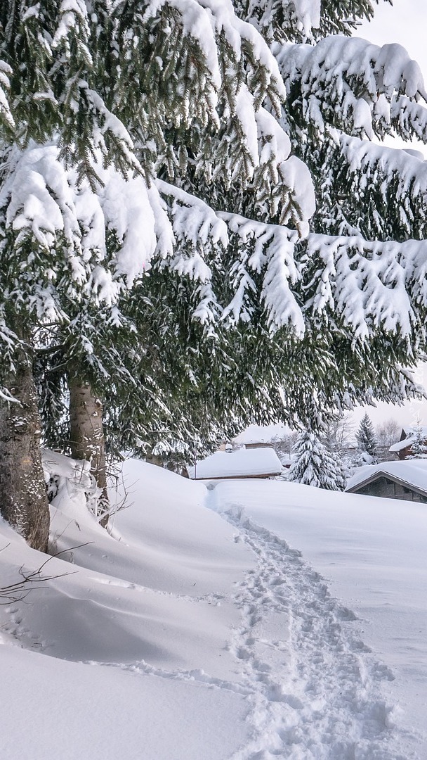Edytor tapety: Ścieżka w śniegu pod lasem