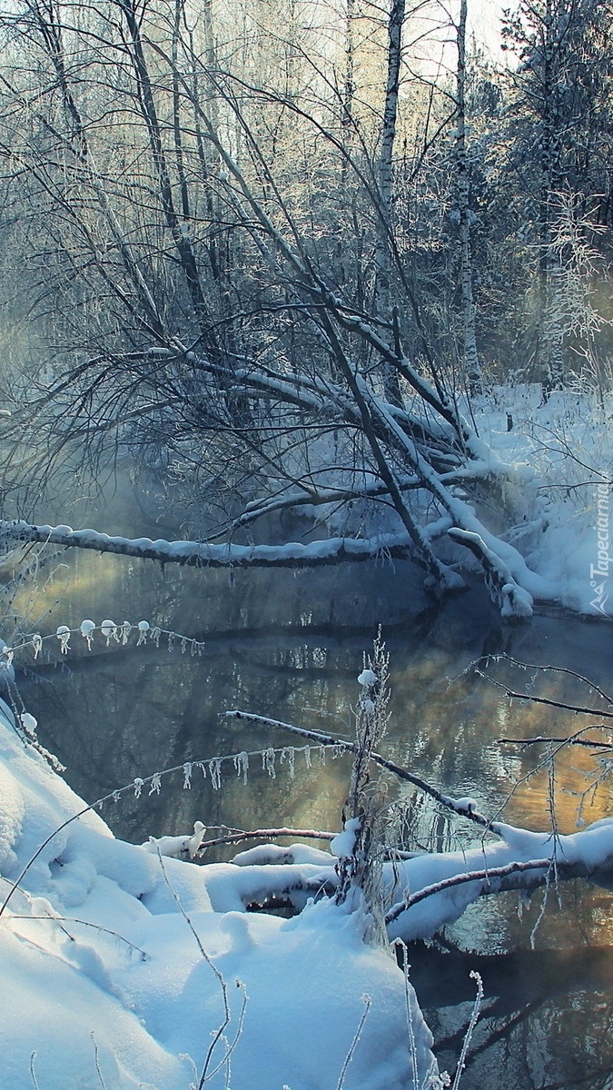 Edytor tapety: Drzewa nad rzeką zimą