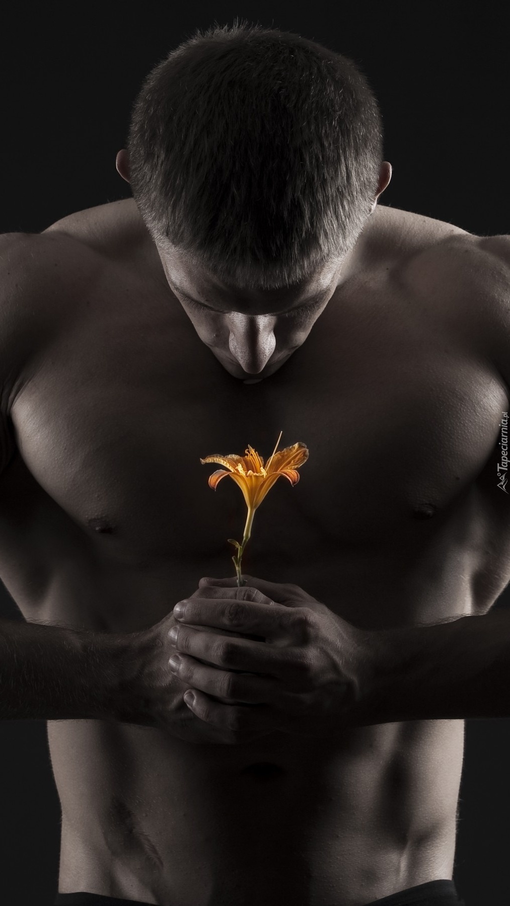 Edytor tapety: Mężczyzna z kwiatem w dłoniach