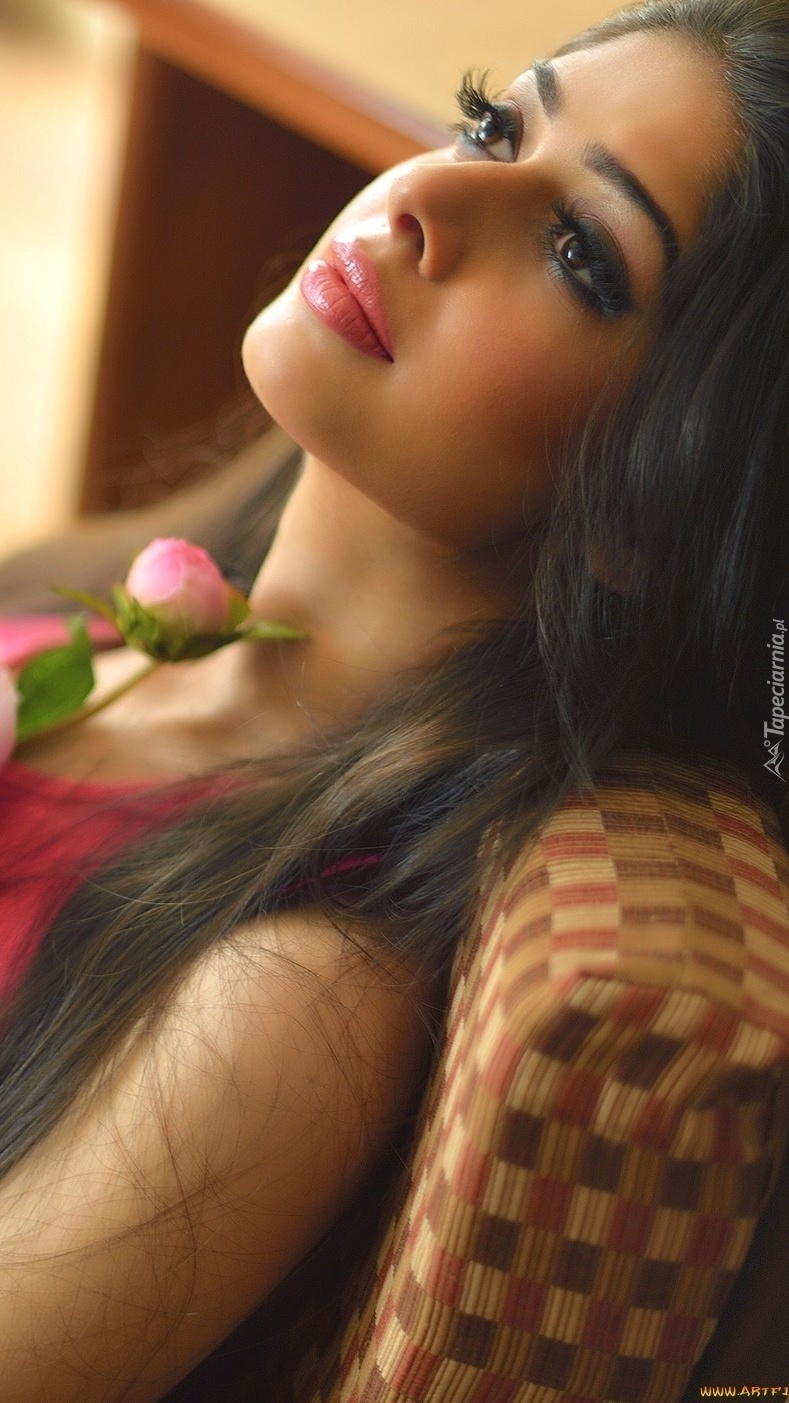Edytor tapety: Rozmarzona dziewczyna z piwonią