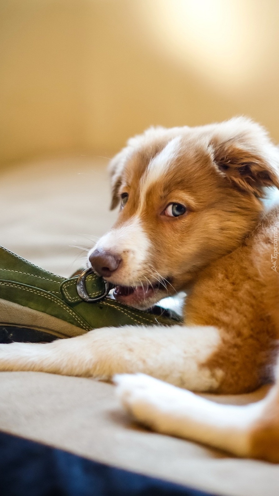 Edytor tapety: Owczarek australijski podgryzający but