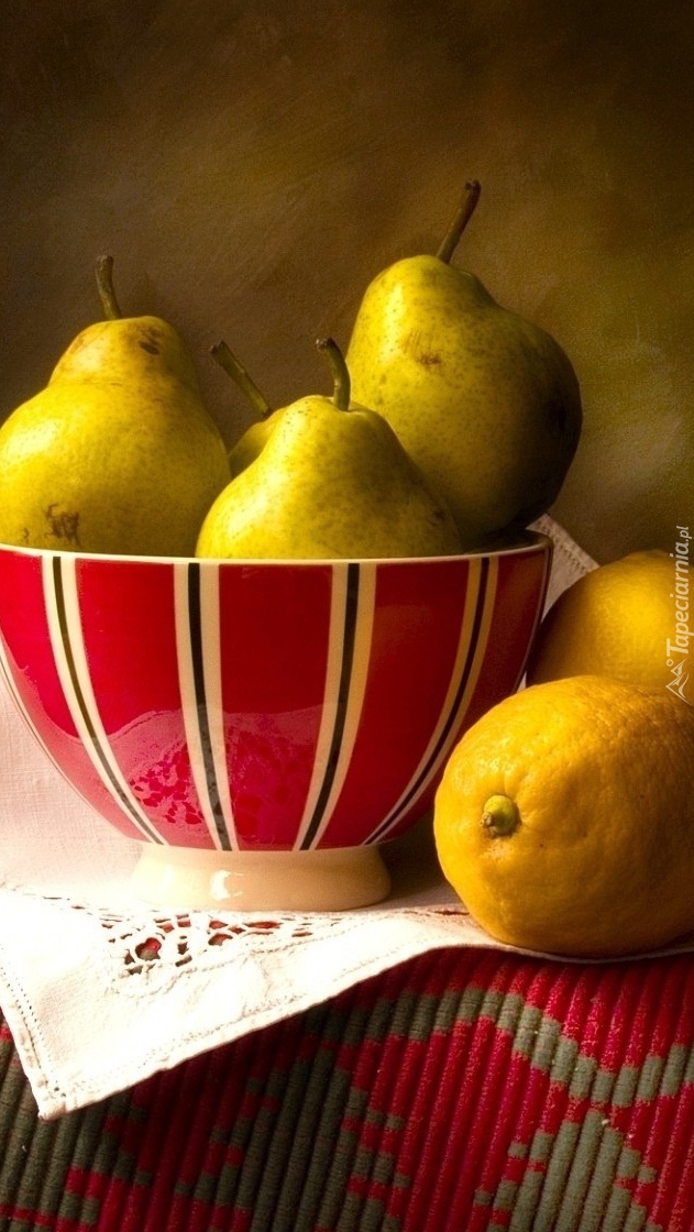 Edytor tapety: Gruszki w misce obok cytryn