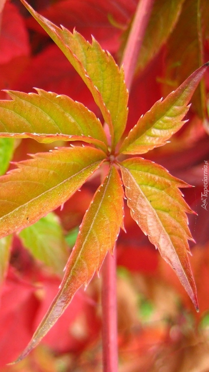 Edytor tapety: Jesienny liść dzikiego wina