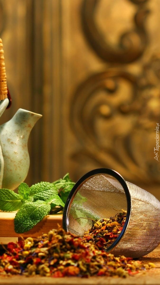 Edytor tapety: Owocowa herbata wysypała się z sitka