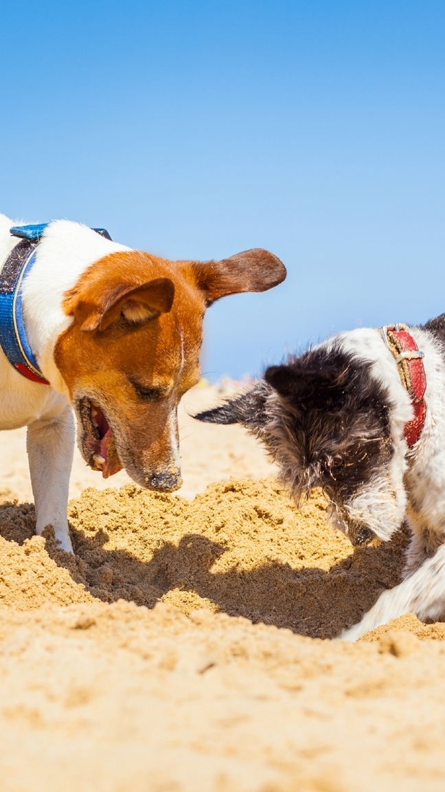 Edytor tapety: Psy podczas zabawy na plaży