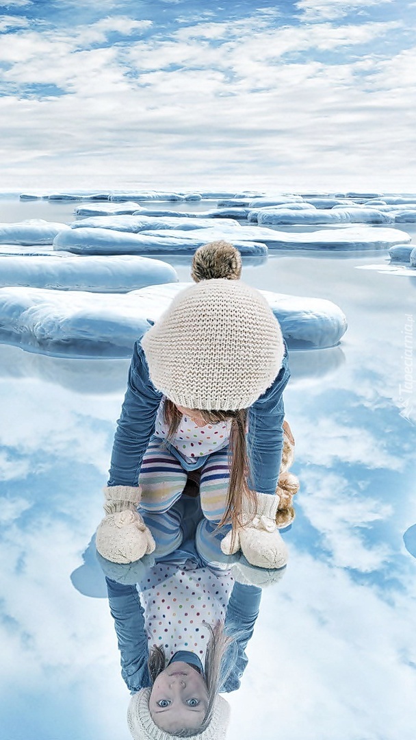 Edytor tapety: Dziewczynka przeglądająca się w tafli lodu