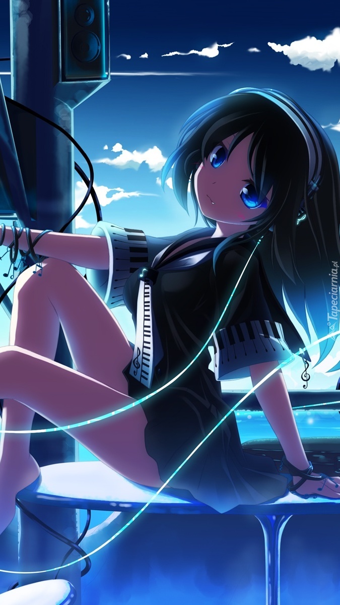 Edytor tapety: Dziewczyna słucha muzyki przez słuchawki