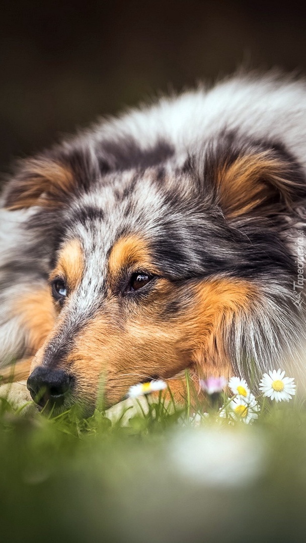 Edytor tapety: Owczarek szkocki długowłosy na łące