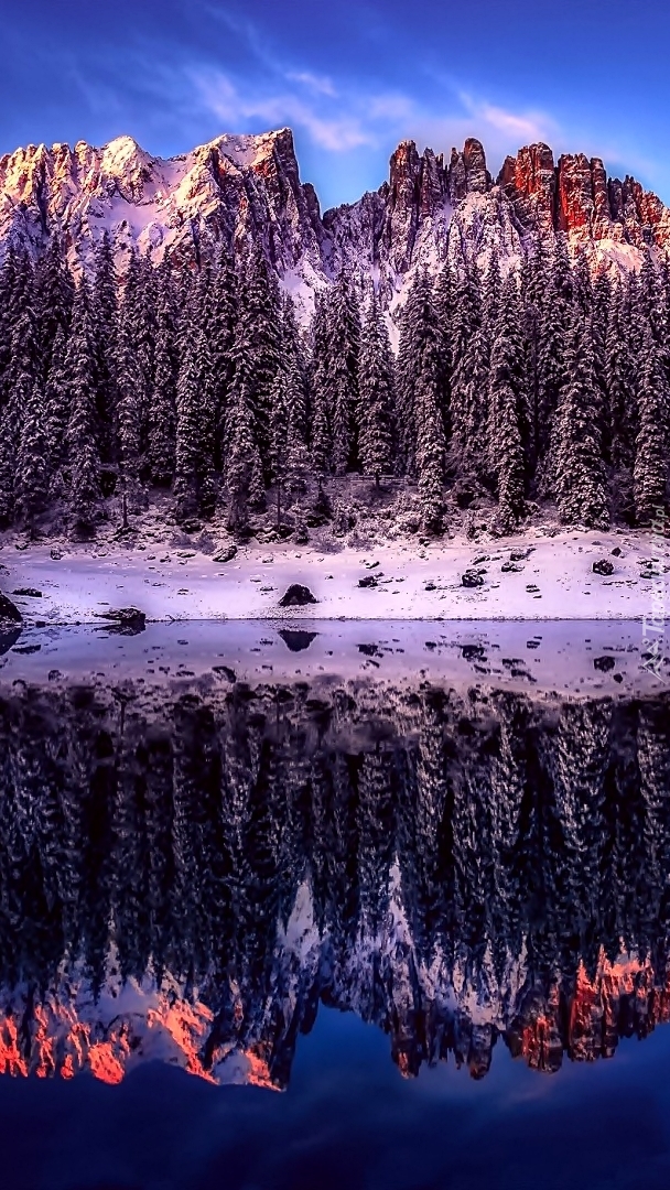 Edytor tapety: Góry w odbiciu jeziora Karersee