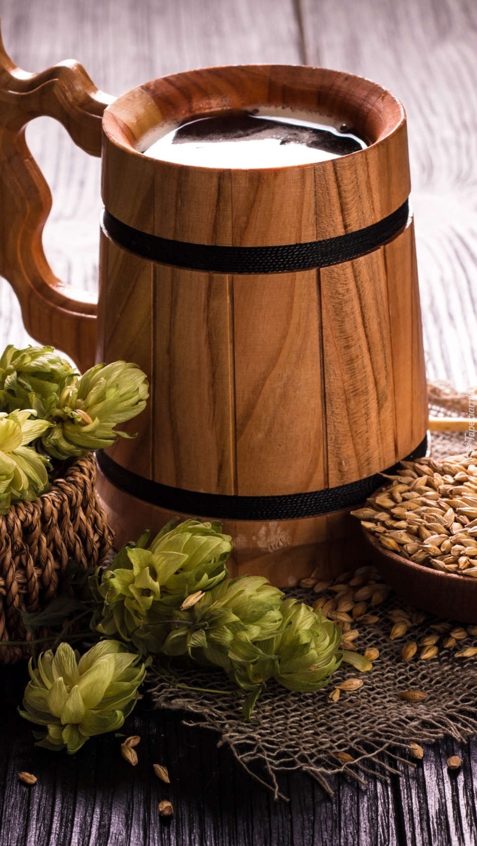 Edytor tapety: Piwo w drewnianym kuflu