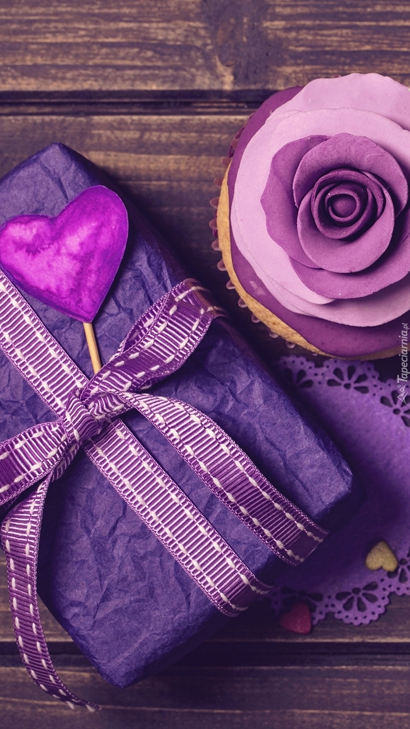 Edytor tapety: Prezent z babeczką na Walentynki