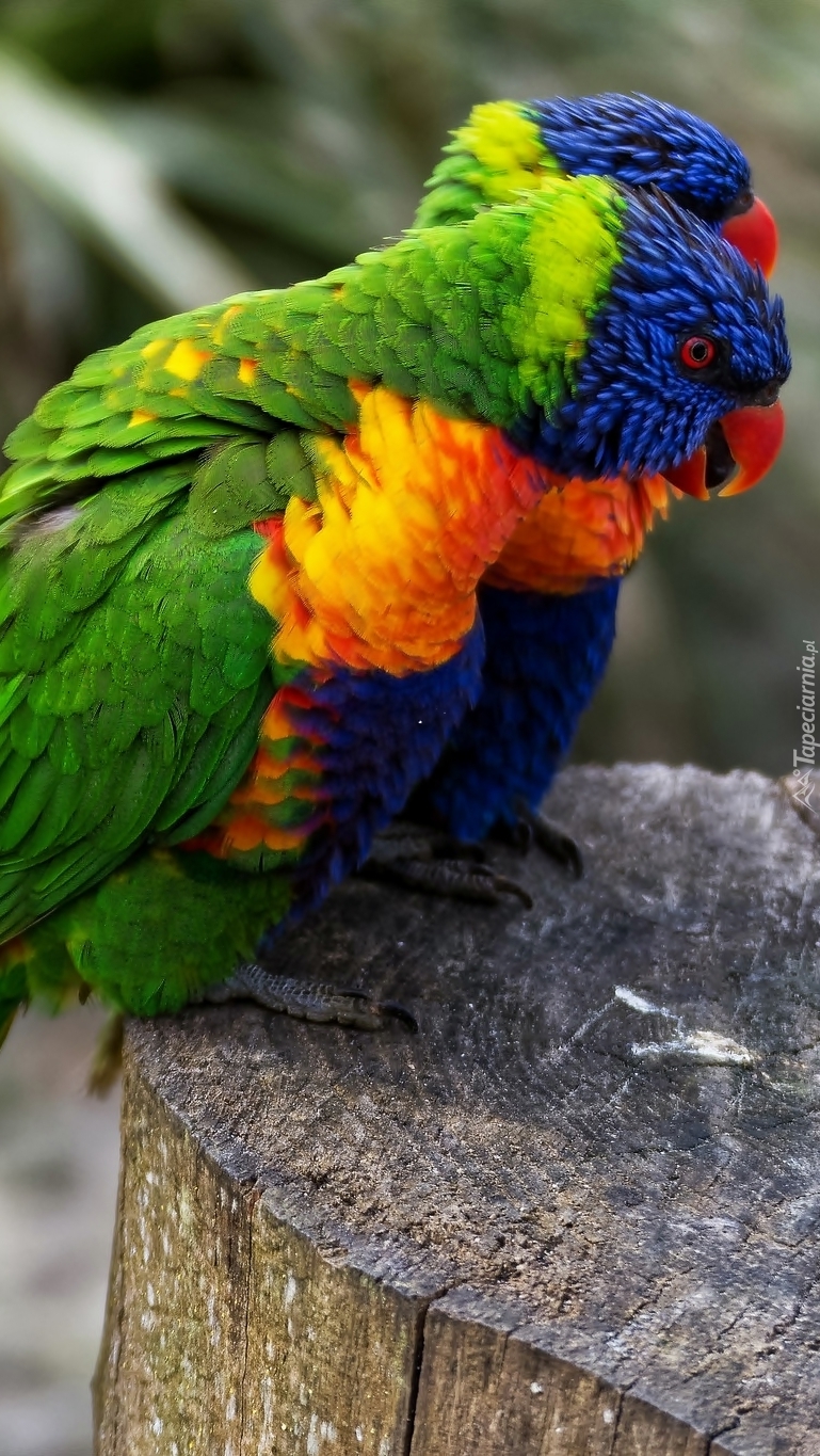 Edytor tapety: Lorysy górskie na pniu