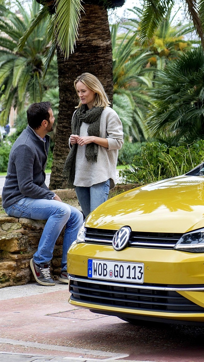 Edytor tapety: Kobieta i mężczyzna obok samochodu