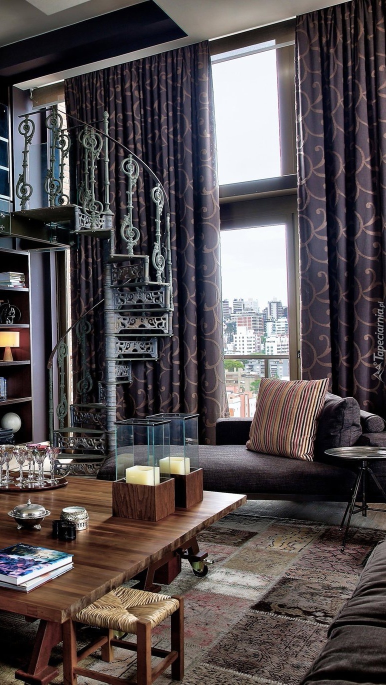 Edytor tapety: Umeblowany salon ze schodami