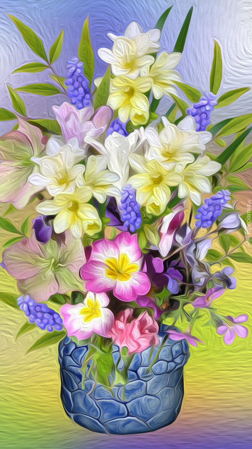 Edytor tapety: Graficzny bukiet kwiatów w wazonie