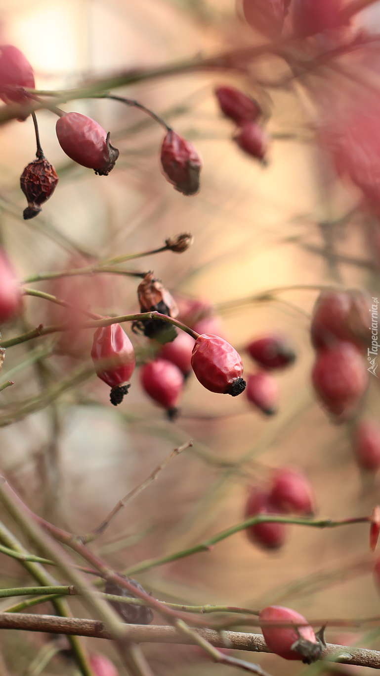 Edytor tapety: Owoce dzikiej róży na gałązkach
