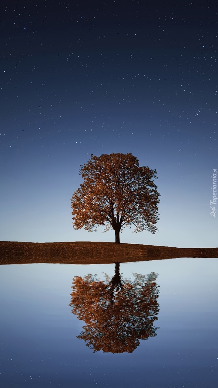 Edytor tapety: Samotne drzewo odbija się w wodzie