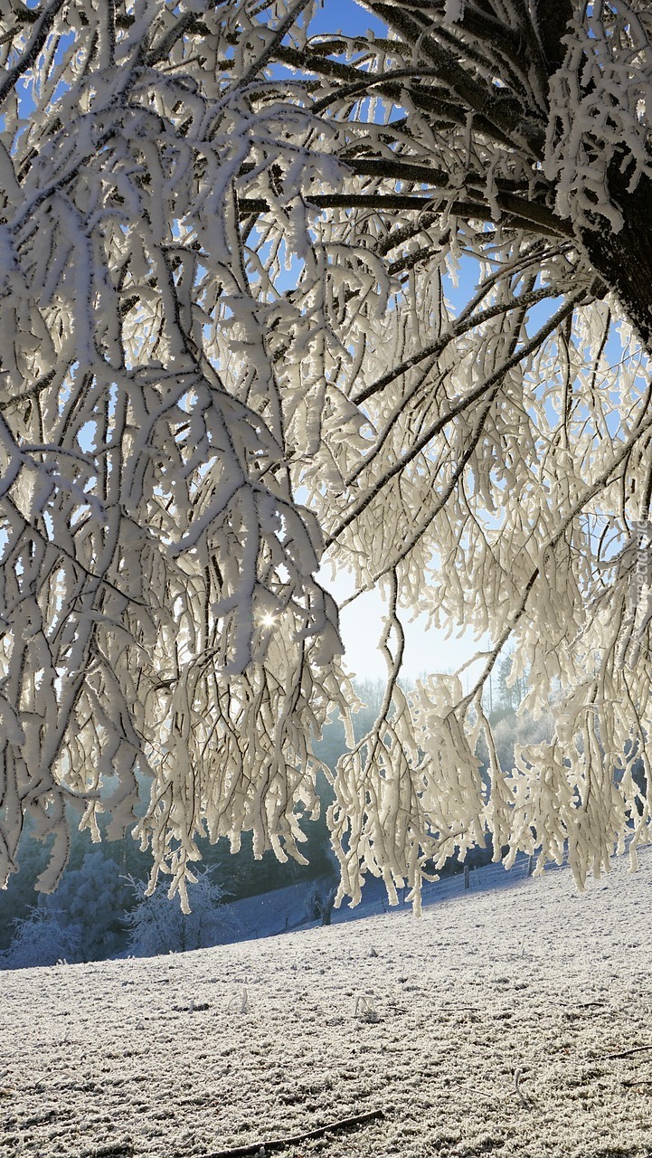 Edytor tapety: Ośnieżone zwisające gałęzie drzewa