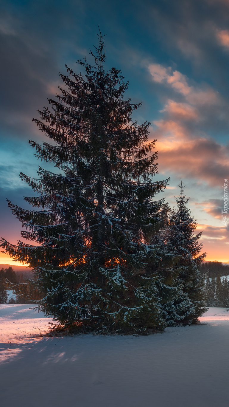 Edytor tapety: Drzewo o zachodzie słońca zimą