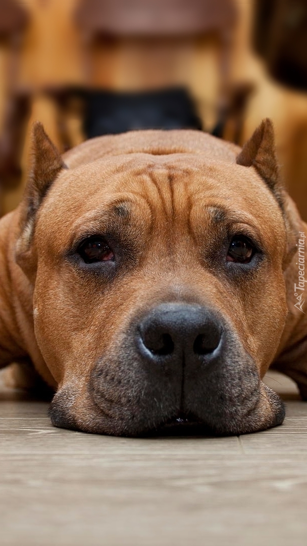 Edytor tapety: Leżący pit bull terrier