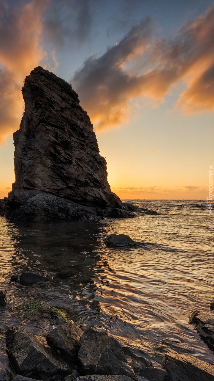 Edytor tapety: Skała w chmurach nad morzem