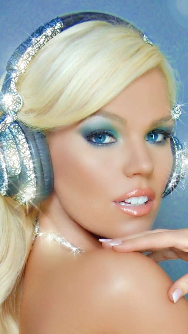 Edytor tapety: Blondynka ze słuchawkami na uszach