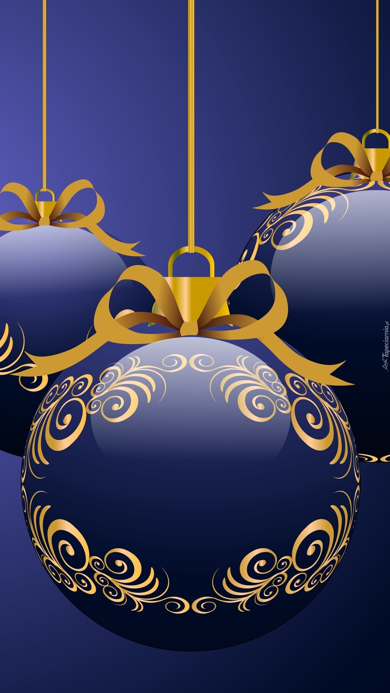 Edytor tapety: Granatowo-złote bombki