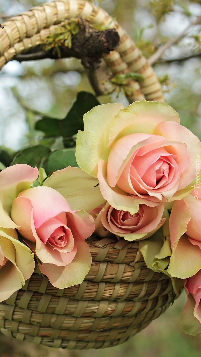 Edytor tapety: Różowe róże w koszyku