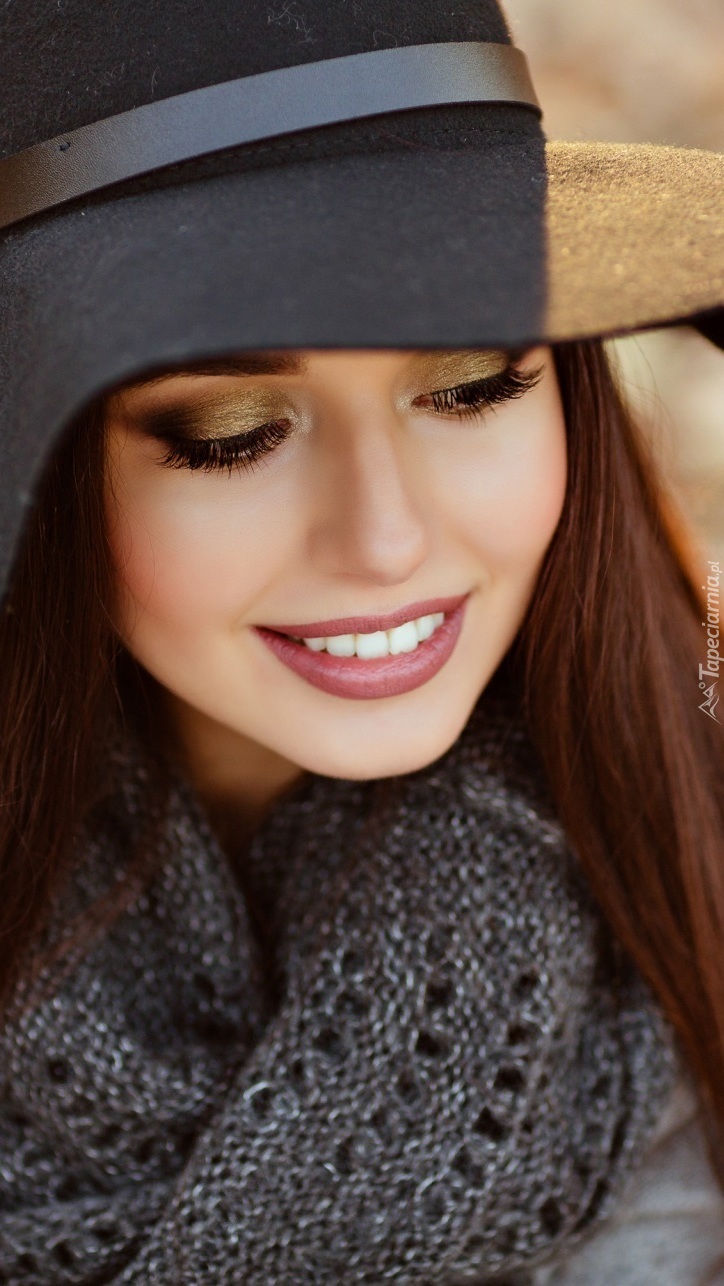 Edytor tapety: Uśmiechnięta kobieta w kapeluszu