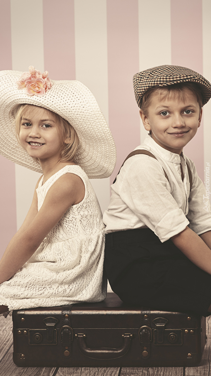 Edytor tapety: Dzieci siedzące na walizce