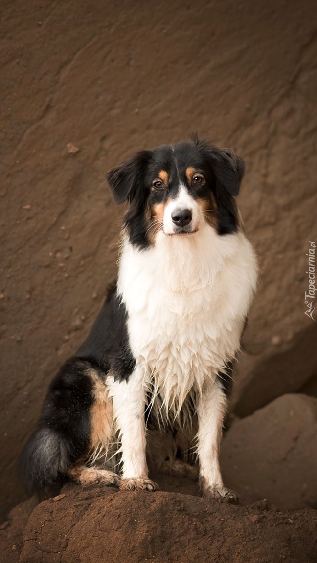Edytor tapety: Owczarek australijski na skałach