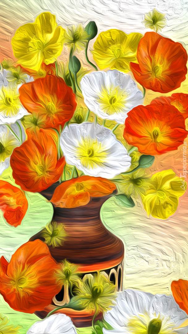 Edytor tapety: Graficzny bukiet maków w wazonie