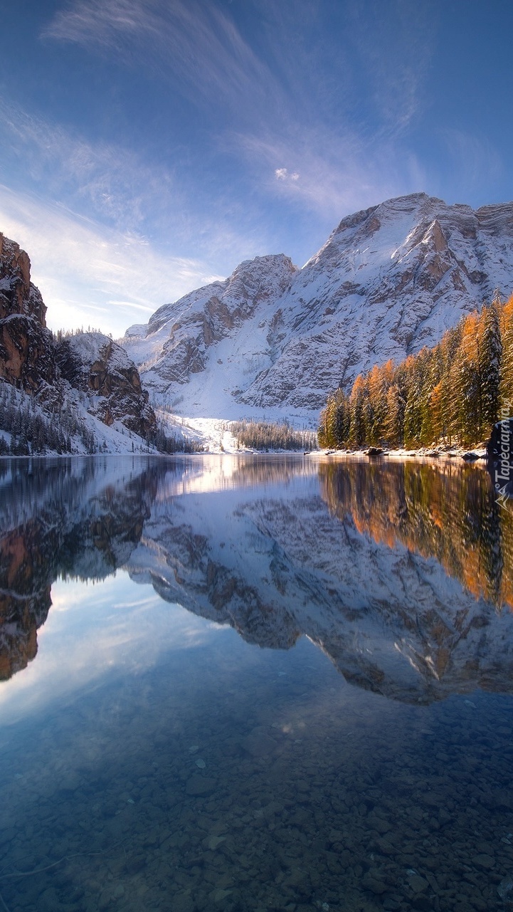 Edytor tapety: Jezioro Pragser Wildsee we włoskich Dolomitach